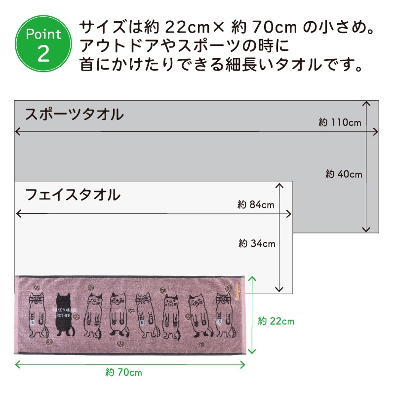 首にかけて使いやすい細長いマフラータイプのタオルです。
